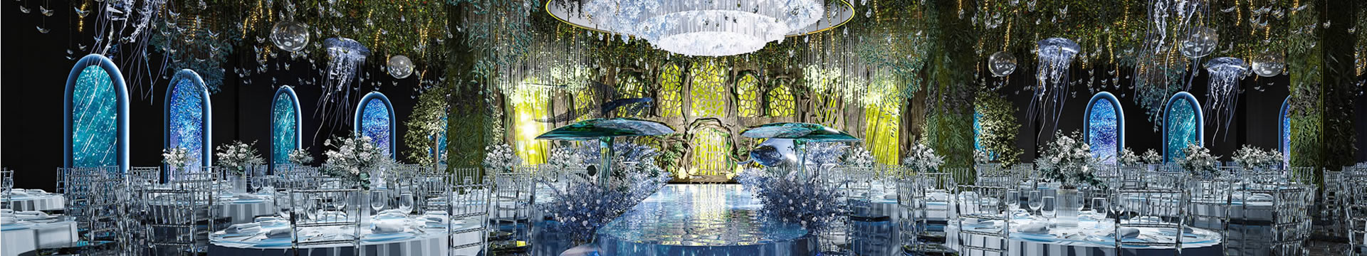 岳普湖居易蓝色调婚礼堂效果展示